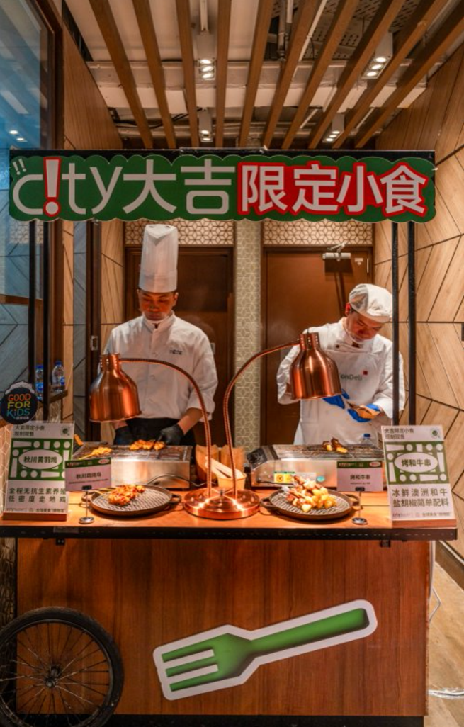 上周末,city’super超生活兴业太古汇店举办了一场融合全球美食与生活美学的潮流市集“city大吉”。大厨们精选澳洲冰鲜和牛、南极G5犬牙鱼、无抗秋川鸡、山林慢养藏香猪等全球食材,在市集中带来一道道创意美食。
