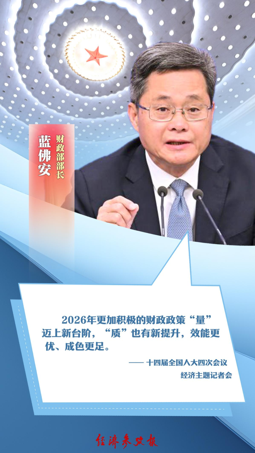 3月6日,财政部部长蓝佛安在十四届全国人大四次会议经济主题记者会上表示,2026年更加积极的财政政策“量”迈上新台阶,“质”也有新提升,效能更优、成色更足。这既体现在资金规模上,政策力度给足;更体现在强化政策协同上,效应进一步放大。