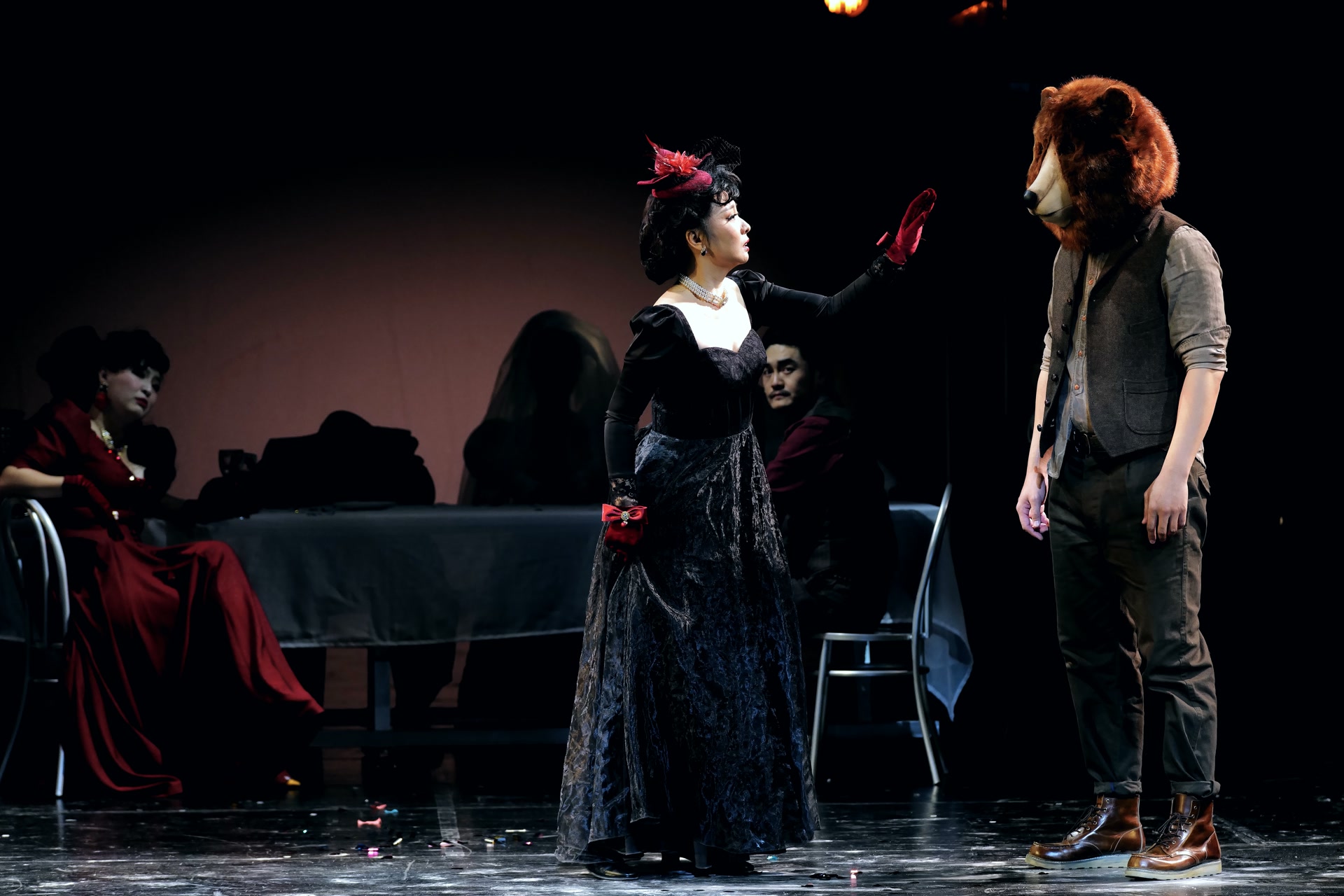作为一部向契诃夫致敬的诚意之作,该剧创造性地选取了契诃夫的三幕独幕喜剧《蠢熊》《求婚》和《婚礼》,同时融合《套中人》《捉弄》《新娘》《关于爱情》等多部小说元素。导演查文浩以天马行空的想象力打破了经典文学改编的刻板桎梏,以大胆前卫的叙事结构,将契诃夫分散在不同作品里的人物与情节巧妙串联,构建出虚实交融的爱情多重宇宙,让经典文学与现代审美碰撞出全新的戏剧火花。