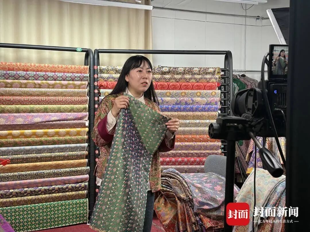 企业将华丽的蜀锦面料直接供应给屏幕那端的国风穿搭主播,甚至把直播间扎根在丝绸博物馆里,让主播身后就是历经沧桑的古老织机。