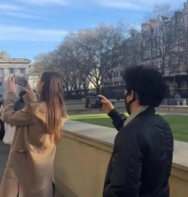 俩人身高差13cm,像极了普通情侣逛街的模样。