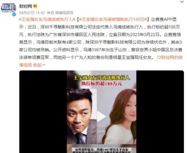 冯清的风波,是自身公司的债务纠纷;