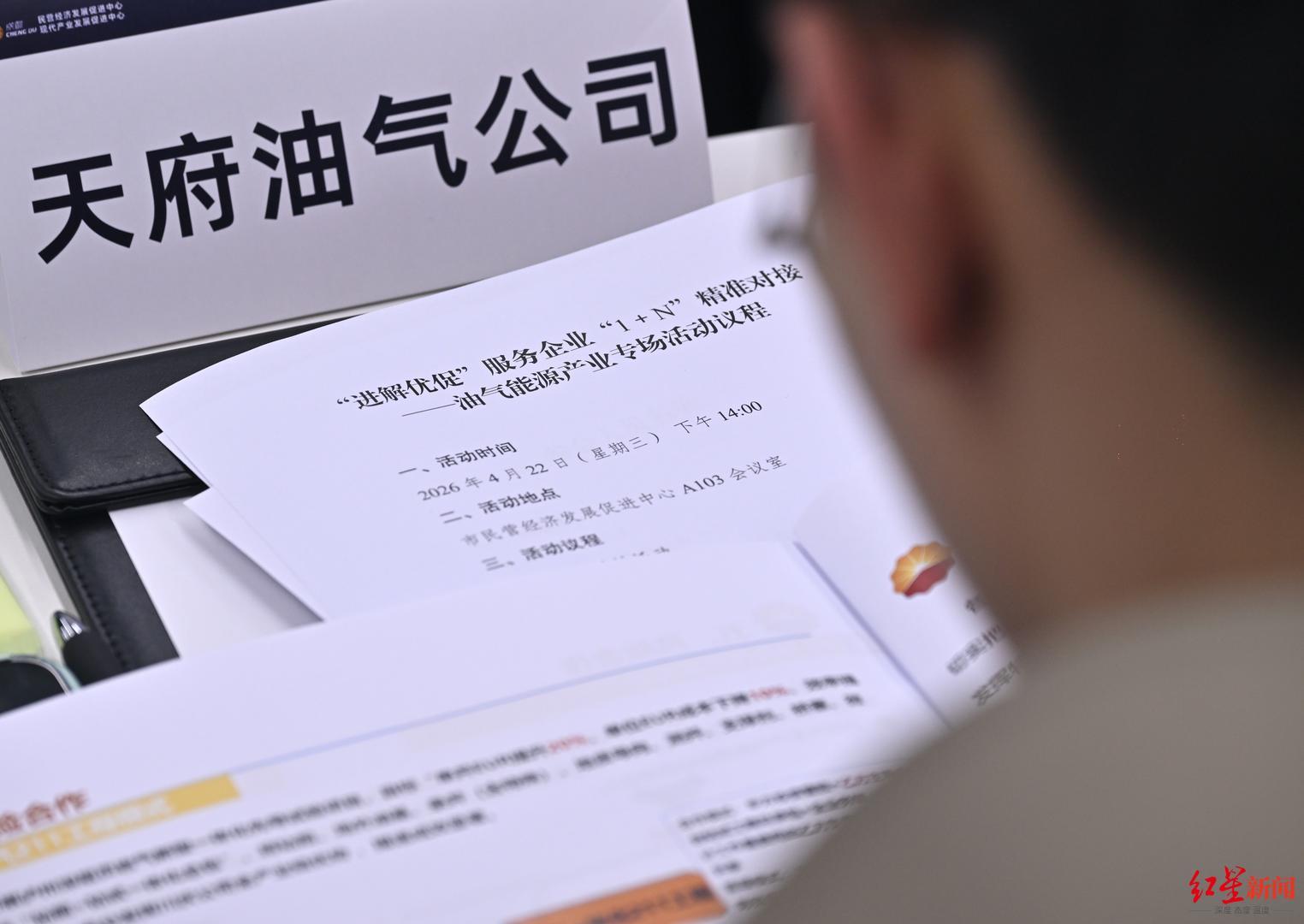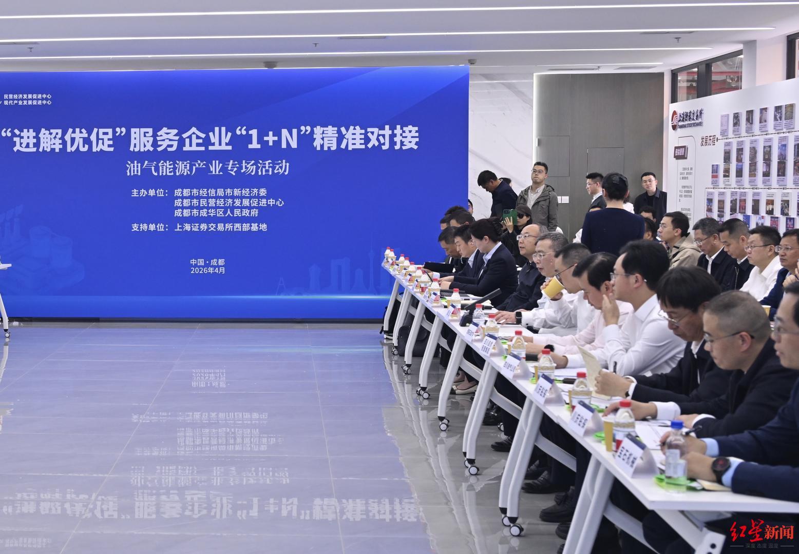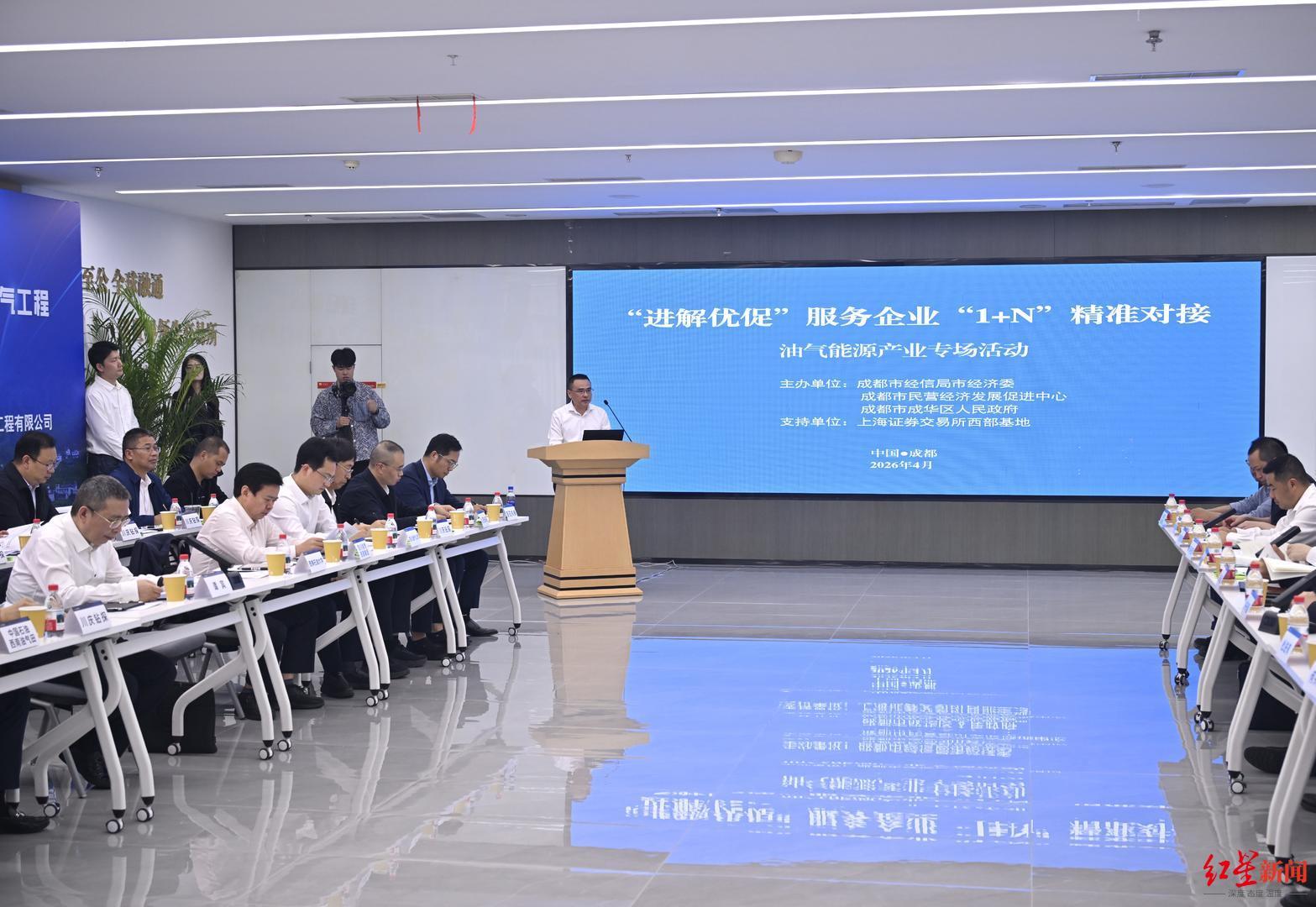 4月22日证配所官网,成都市民营经济发展促进中心内气氛热烈。一场以“进解优促”服务企业“1+N”精准对接为主题的油气能源产业专场活动在此举行。